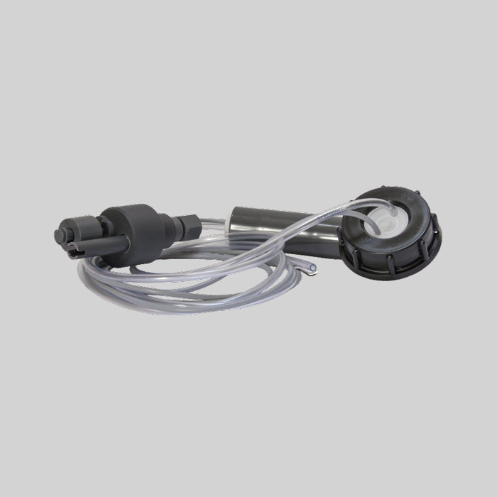 Bundventil med fleksibel slange og inkl. niveaukontakt. Passende til dunke med DIN 61 gevind.