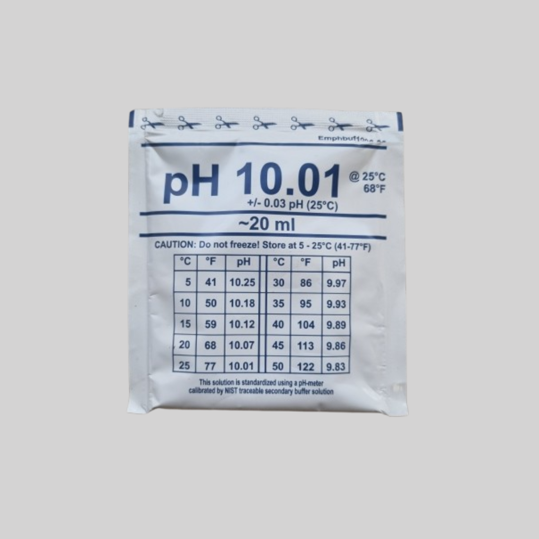 Pose med 20 ml pH 10.00 kalibreringsopløsning.