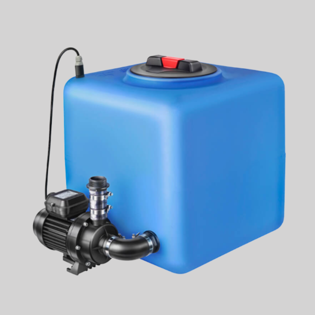 Er din løsning trykløs? Denne pumpestation monteres og enheden sørger for at målevandet føres retur til udligningstanken, efter korrekt aflæsning.